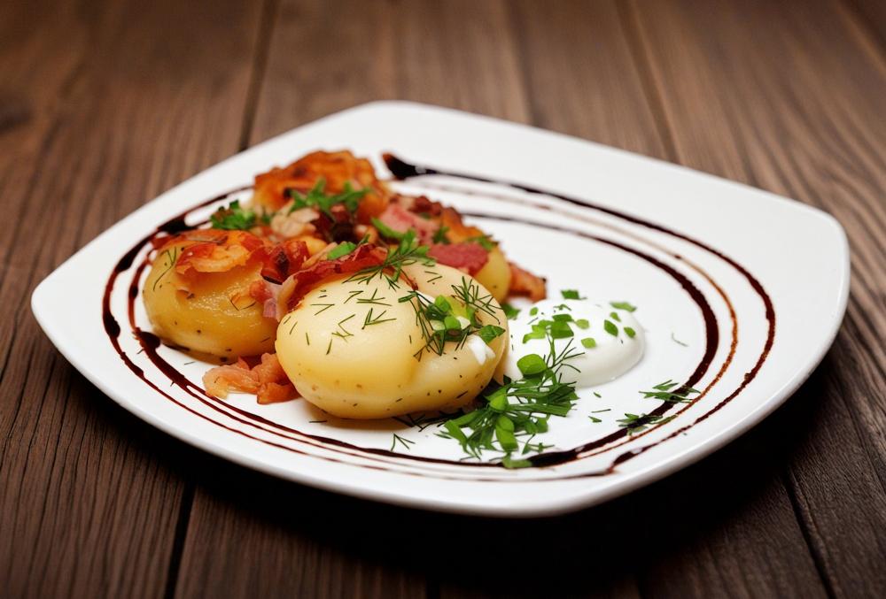 Картофельный драник, вырезка говяжья, белые грибы, сливки