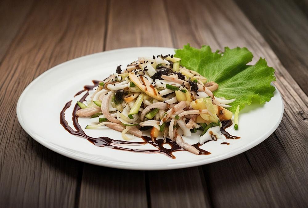 Кальмары, яйцо, чеснок, грецкий орех