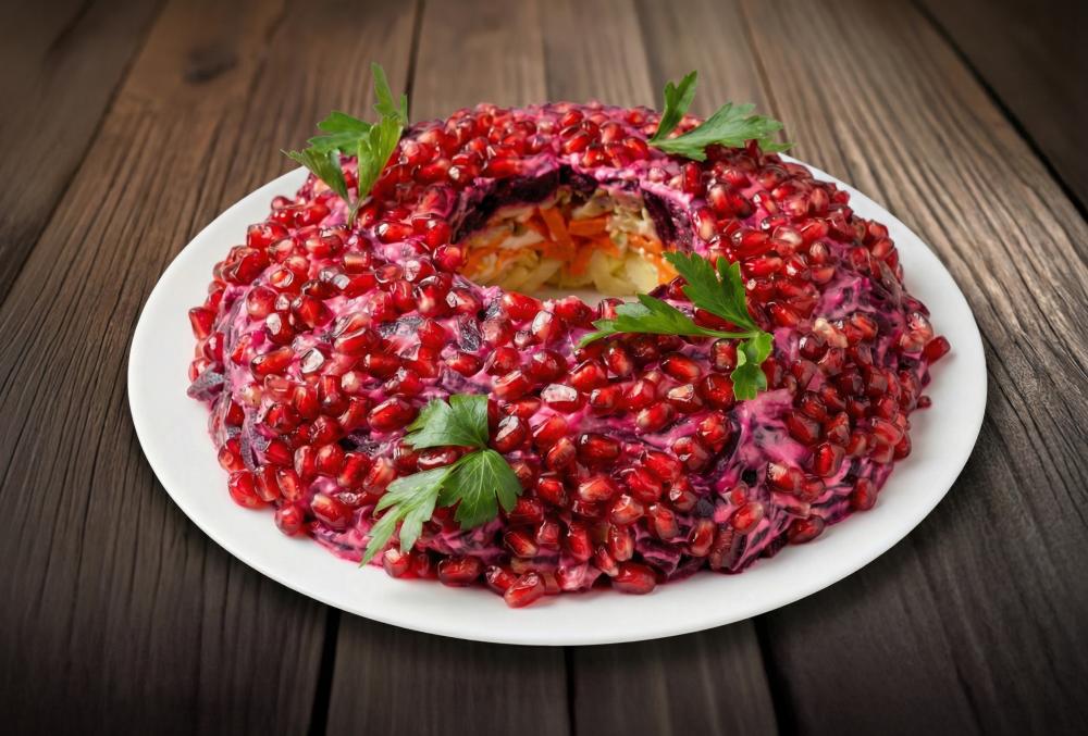 Курица, картофель, морковь, свекла, гранат